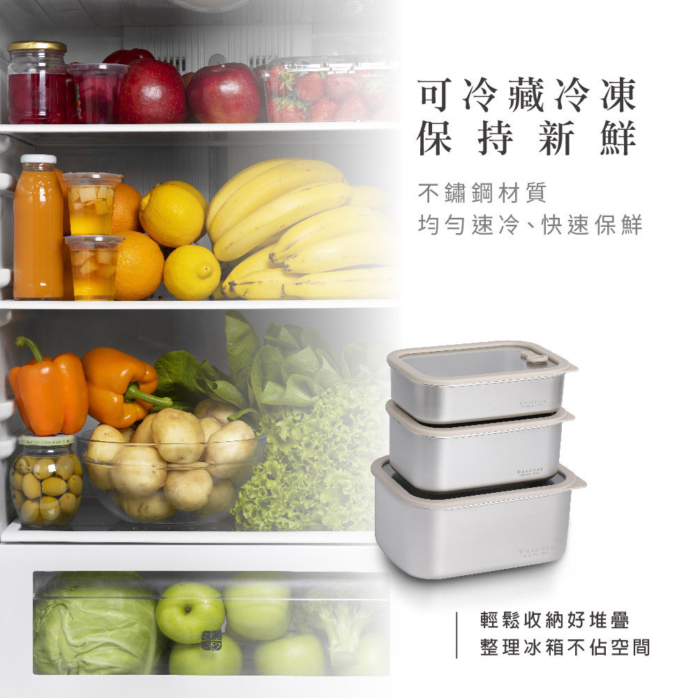 配件【MASIONS 美心】PREMIUM 可微波 皇家316不鏽鋼矽膠玻璃蓋抗菌保鮮盒